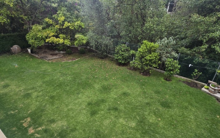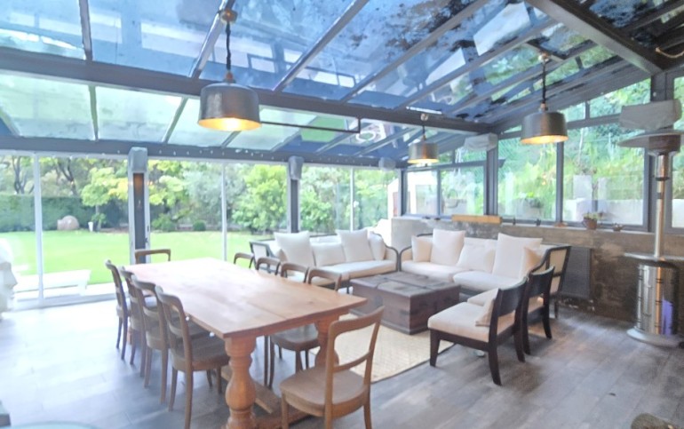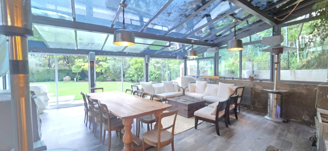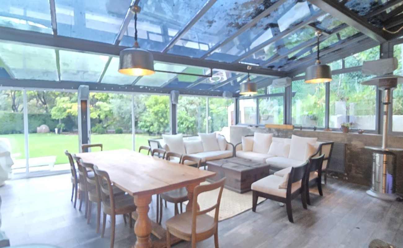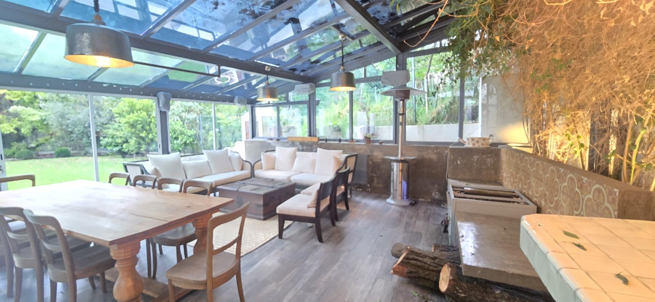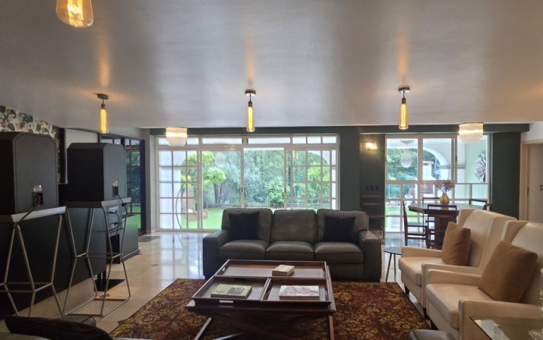 - Amplia sala con doble altura y conexión directa al jardín.