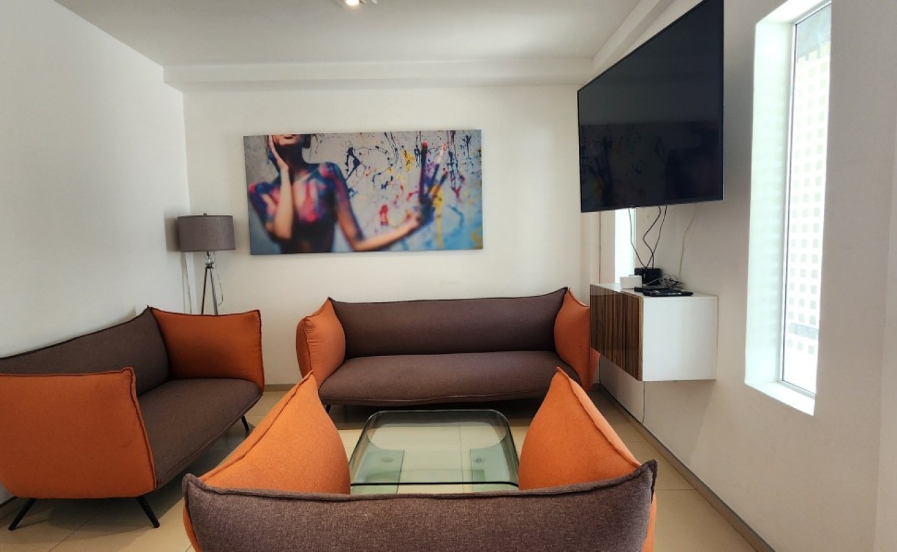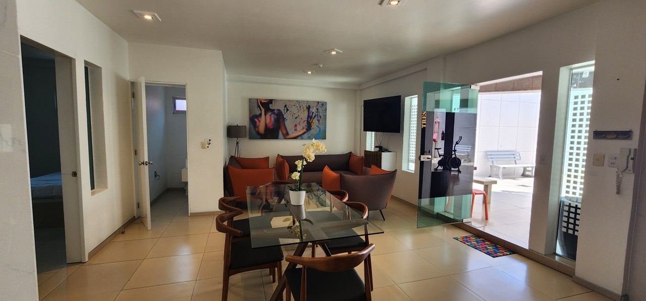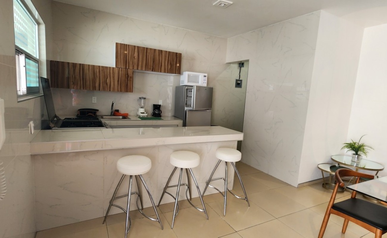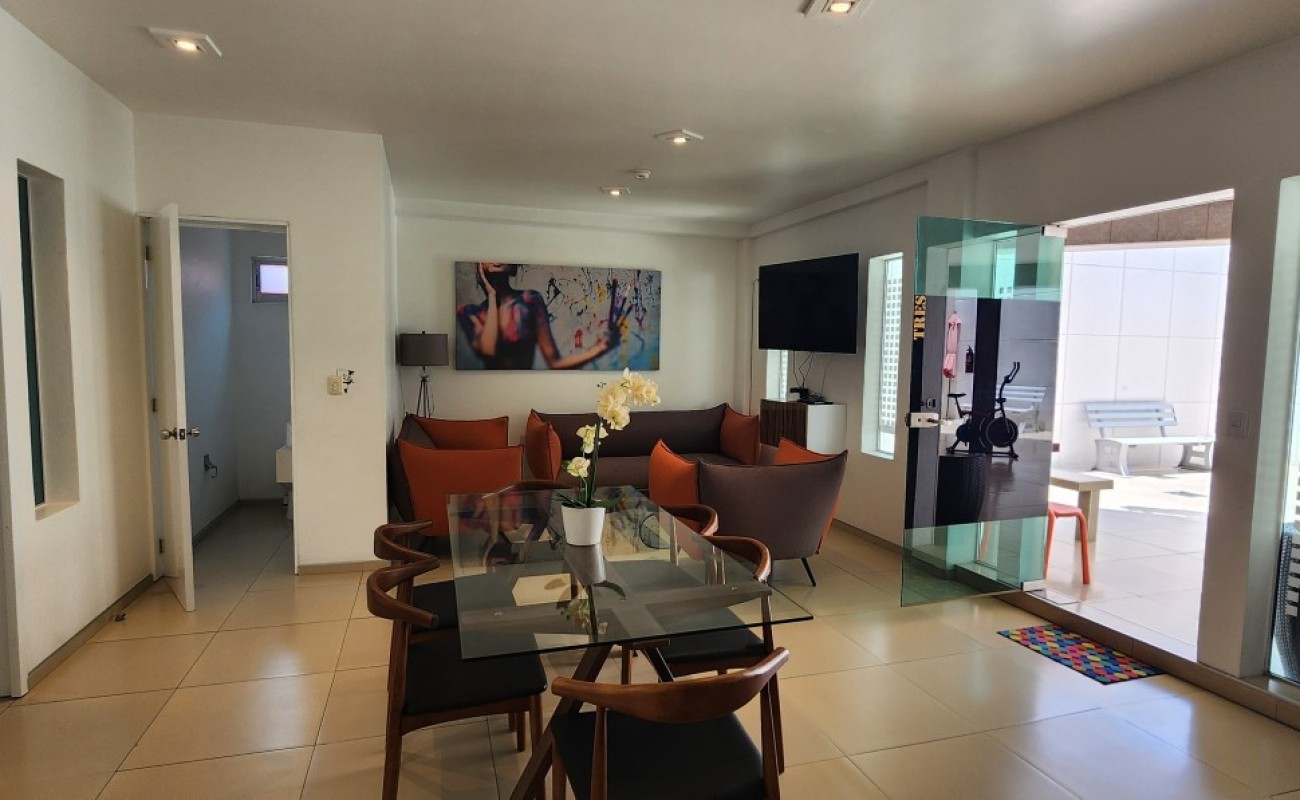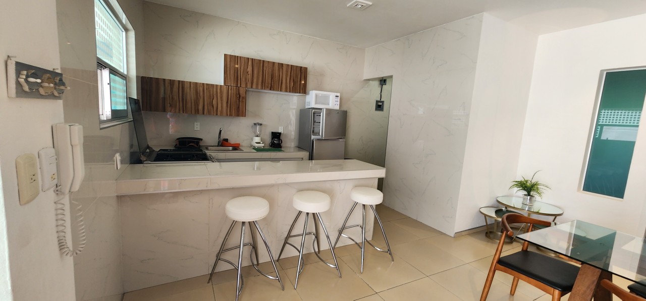 Bonito departamento totalmente amueblado y equipado, ubicado en una zona tranquila y residencial. El edificio es de solo tres niveles (dos niveles habitacionales con únicamente 8 departamentos y un nivel de estacionamiento), lo que brinda privacidad y comodidad.