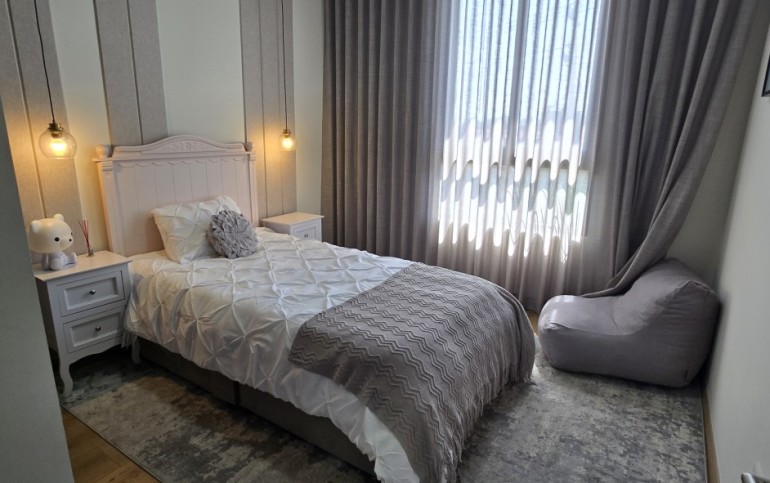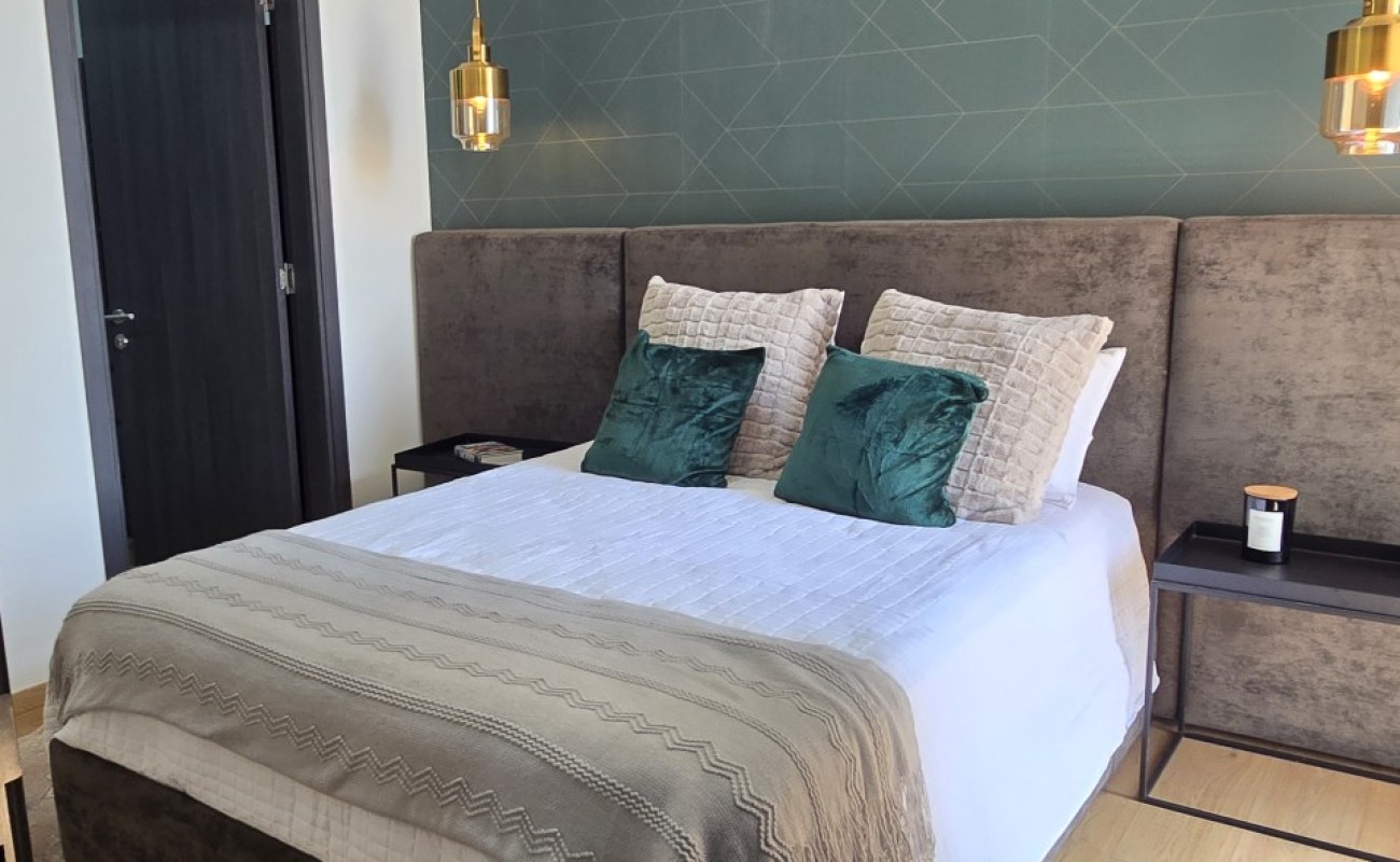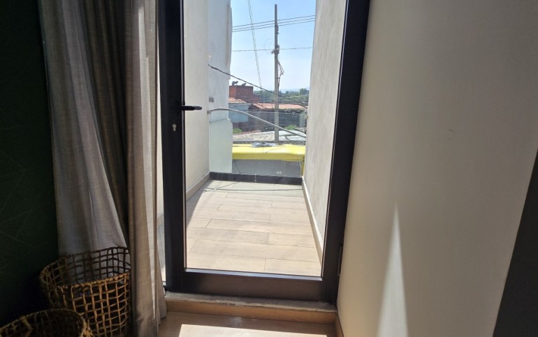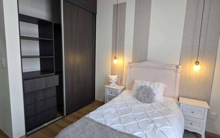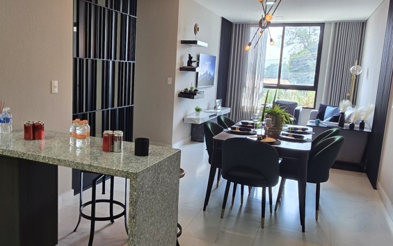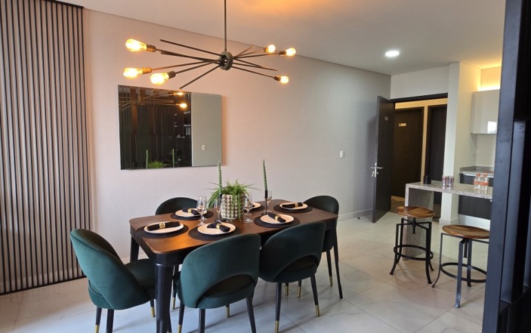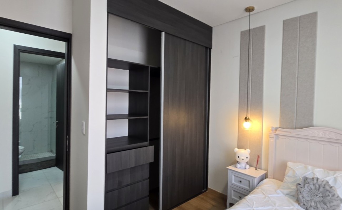 El departamento cuenta con excelentes acabados, pisos de porcelanato, techos altos y una distribución funcional: