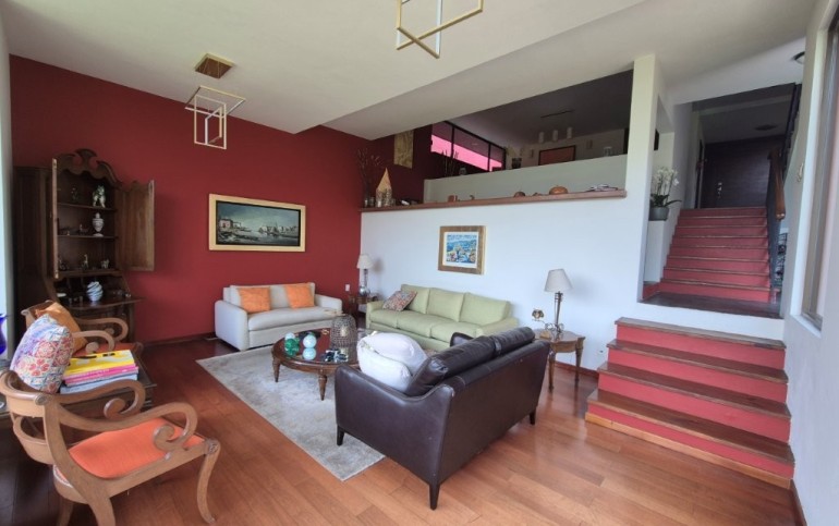 Construida en desniveles que brinda dinamismo a los espacios.