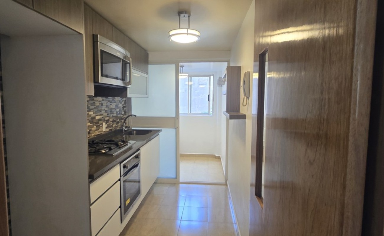 Cocina moderna y equipada, recientemente remodelada con muebles a la medida.