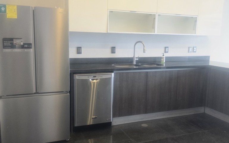 La cocina tiene refrigerador, estufa y horno microondas nuevos, lavavajillas, lavasecadora.