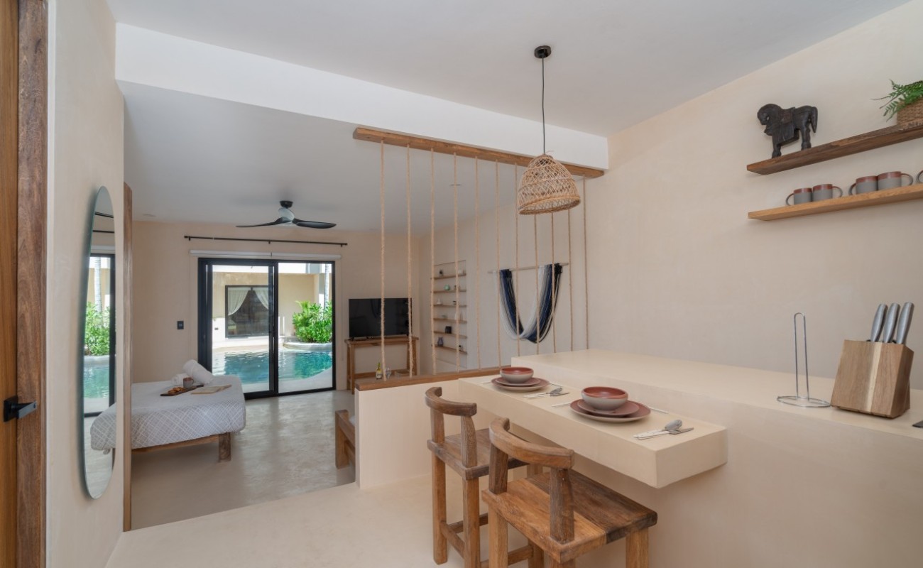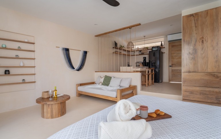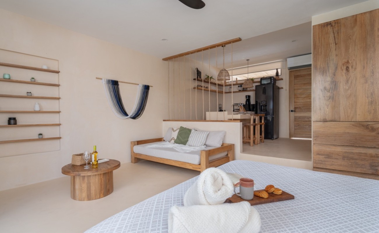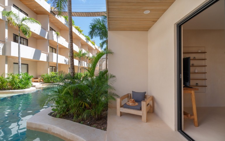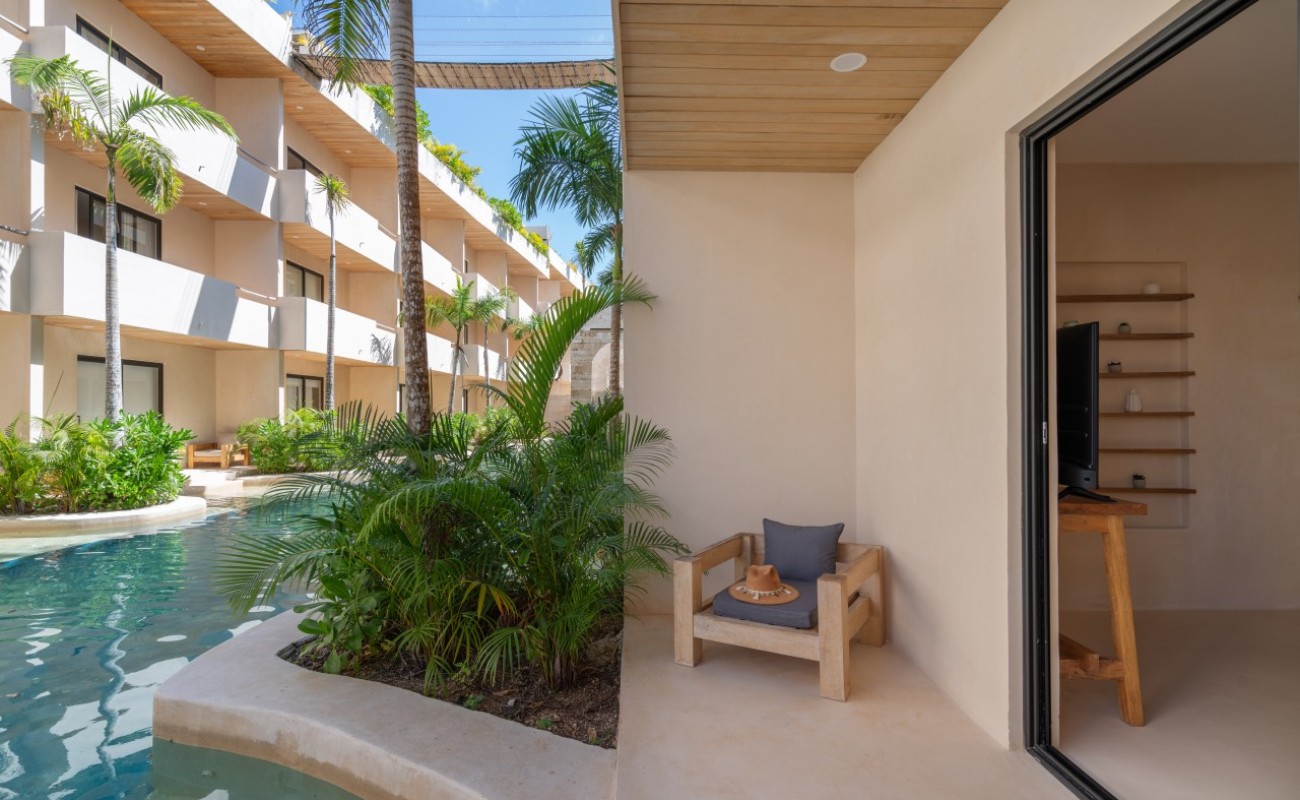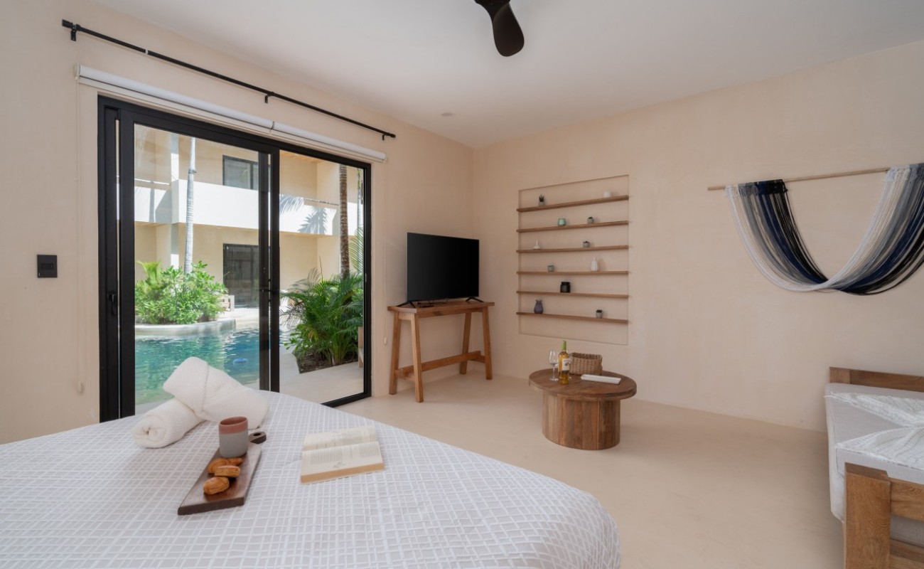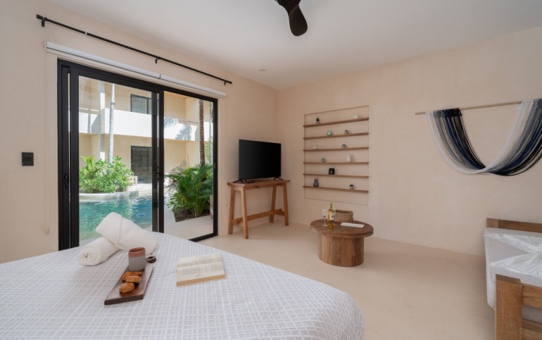 Disfruta del Caribe Mexicano en un exclusivo loft de una recámara, totalmente amueblado y equipado, en Planta Baja, con terraza y acceso directo a la piscina principal.