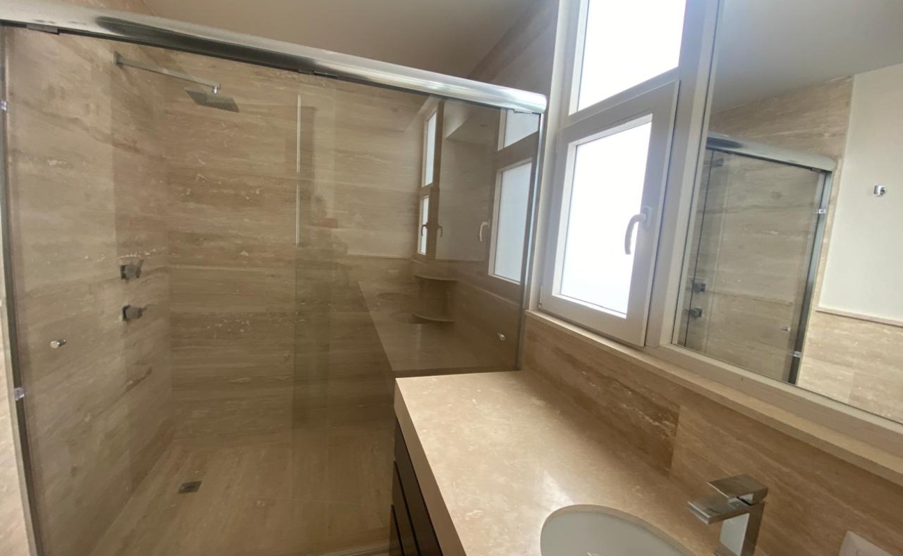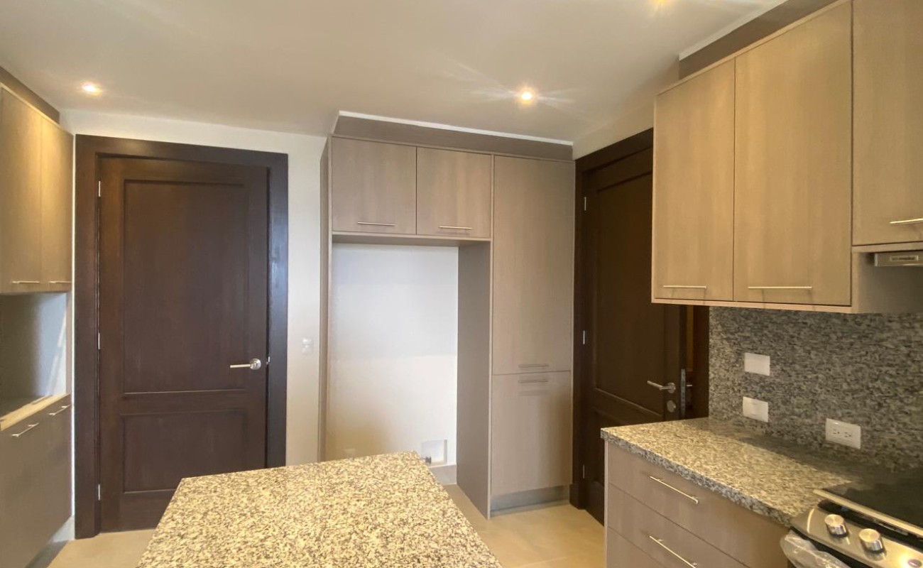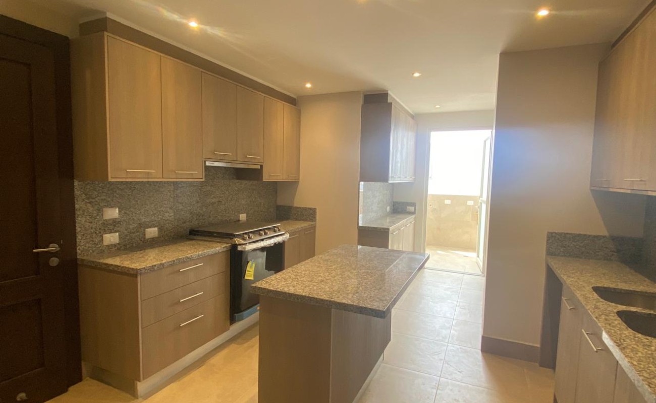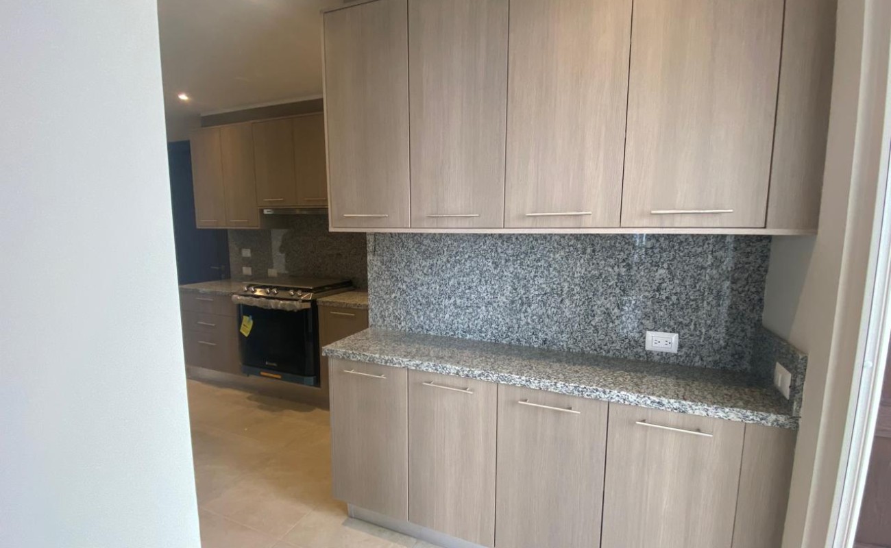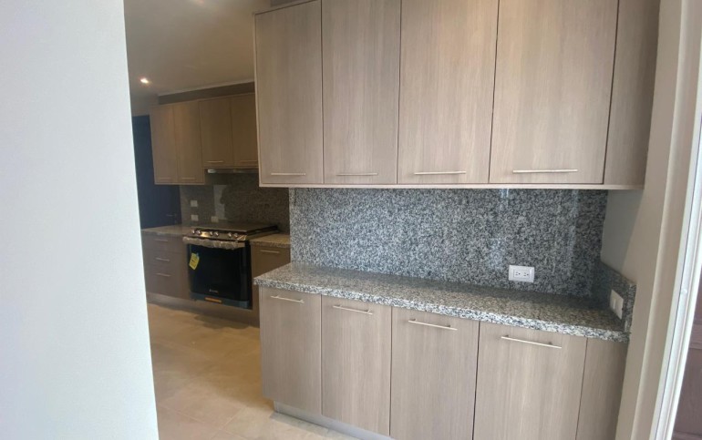 Persianas y doble vidrio en todo el departamento para aislar ruido y frío Cocina con isla de granito, cuarto de lavado y cuarto de servicio con su baño.