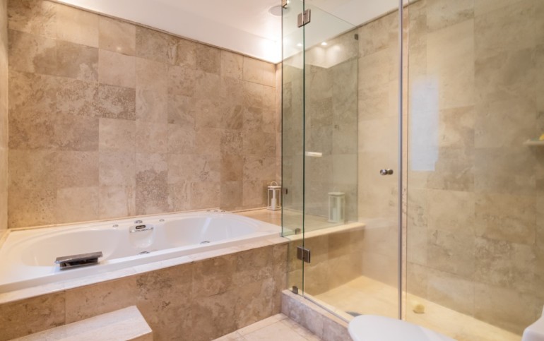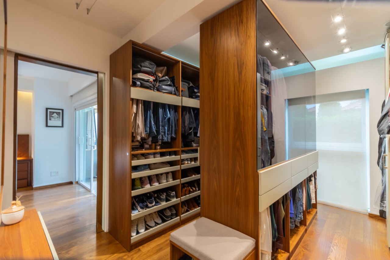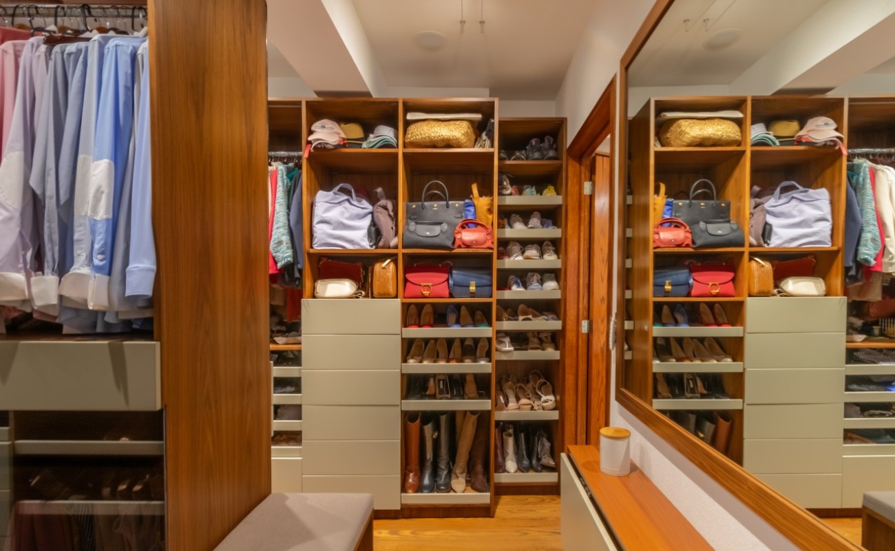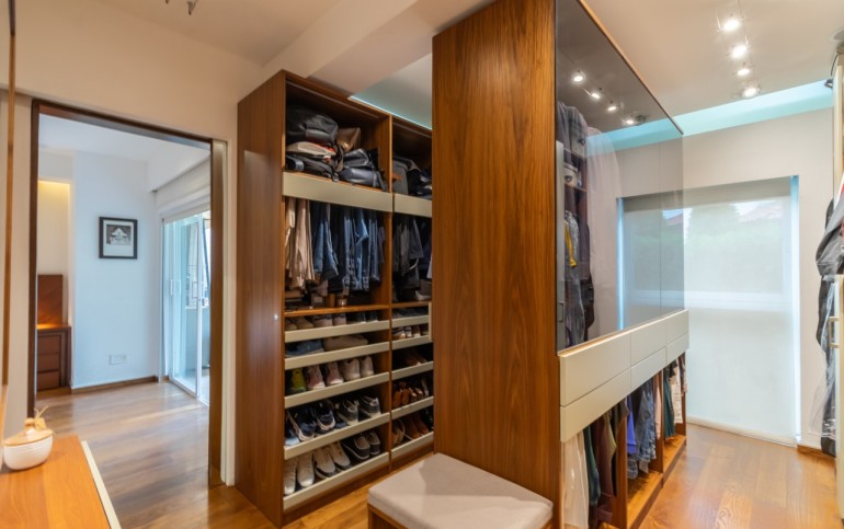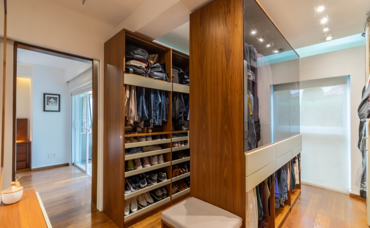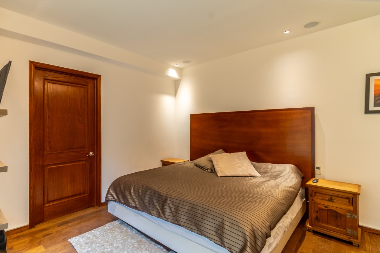 3 recámaras, cada una con baño completo y walk-in closet; la recámara principal incluye un vestidor hecho a la medida, área de tocador, vapor y tina de hidromasaje, además de acceso directo al jardín.