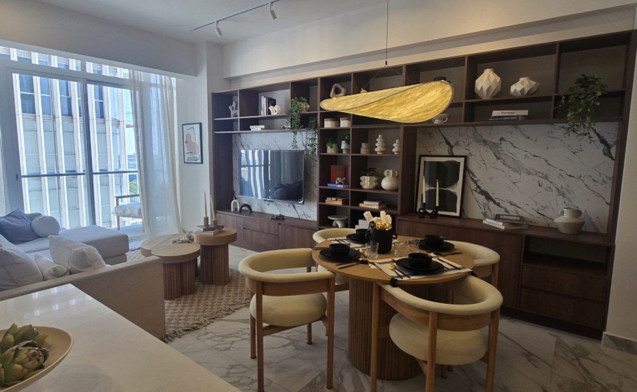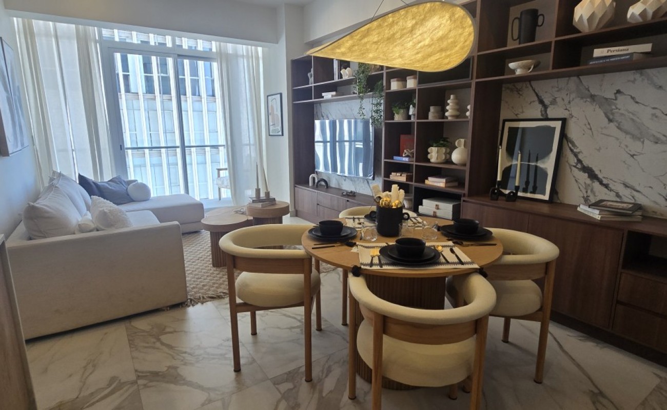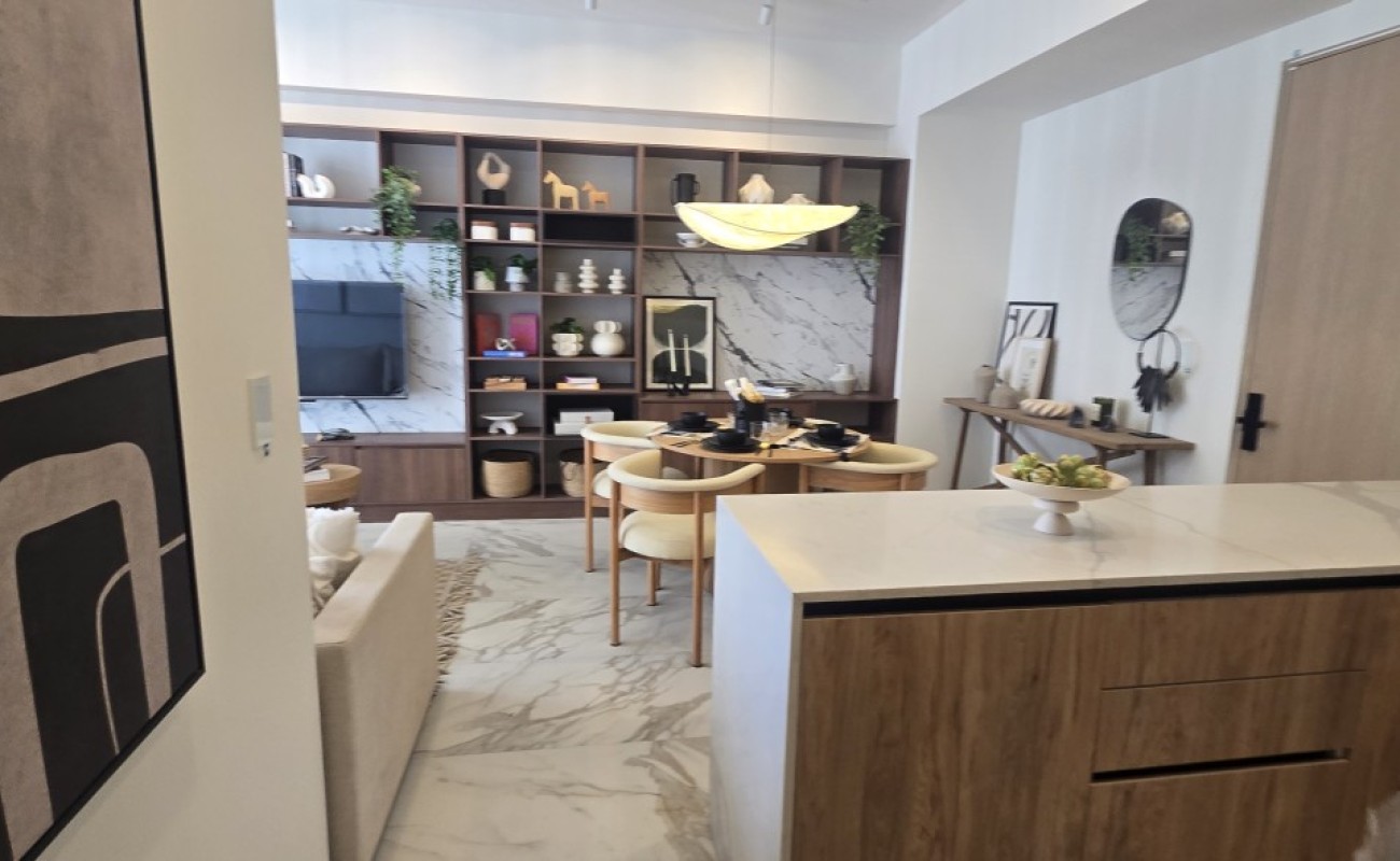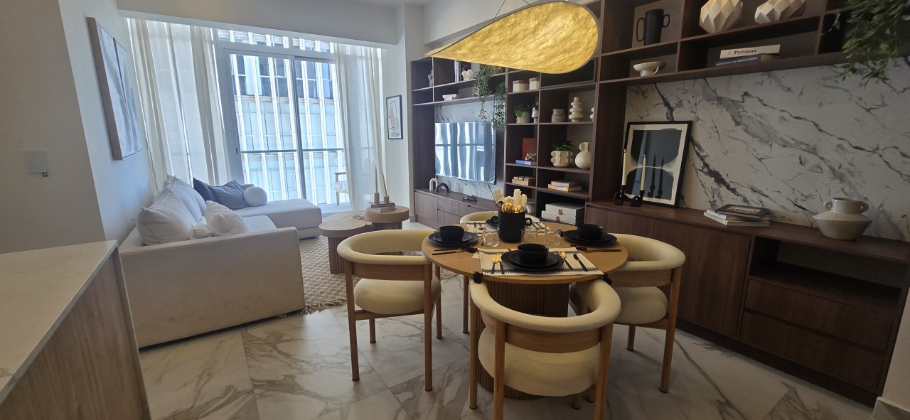 Un espacio contemporáneo, lleno de luz natural, con una impresionante terraza que recorre todo el largo del departamento y regala vistas panorámicas desde cualquier ángulo.