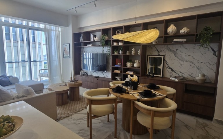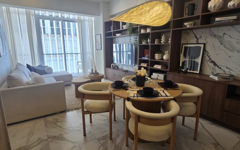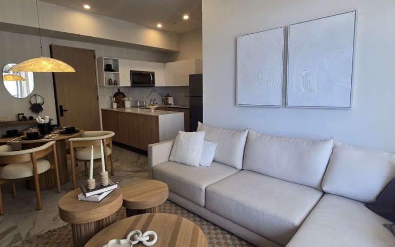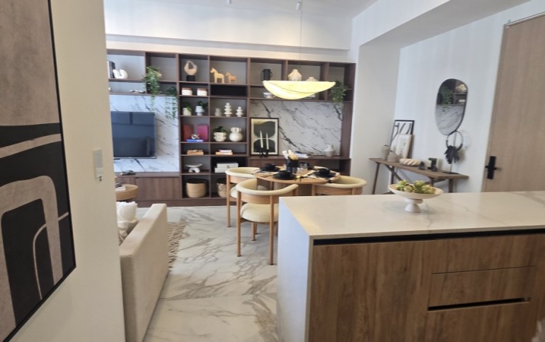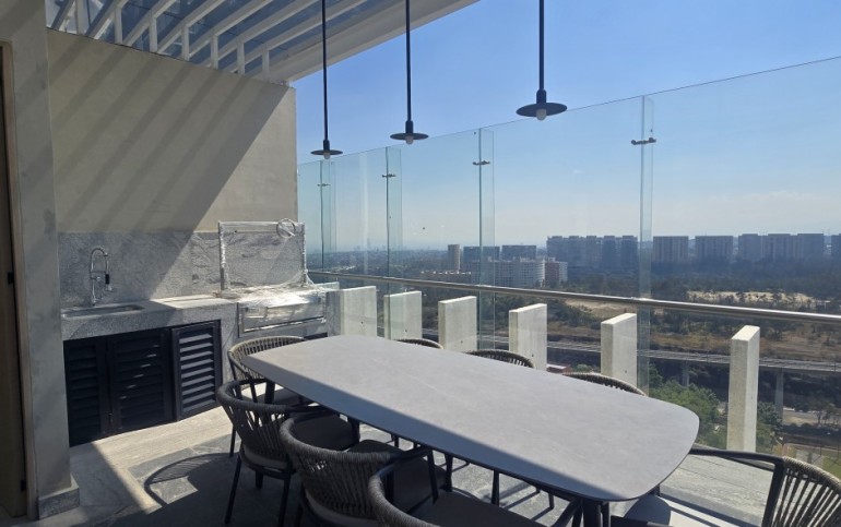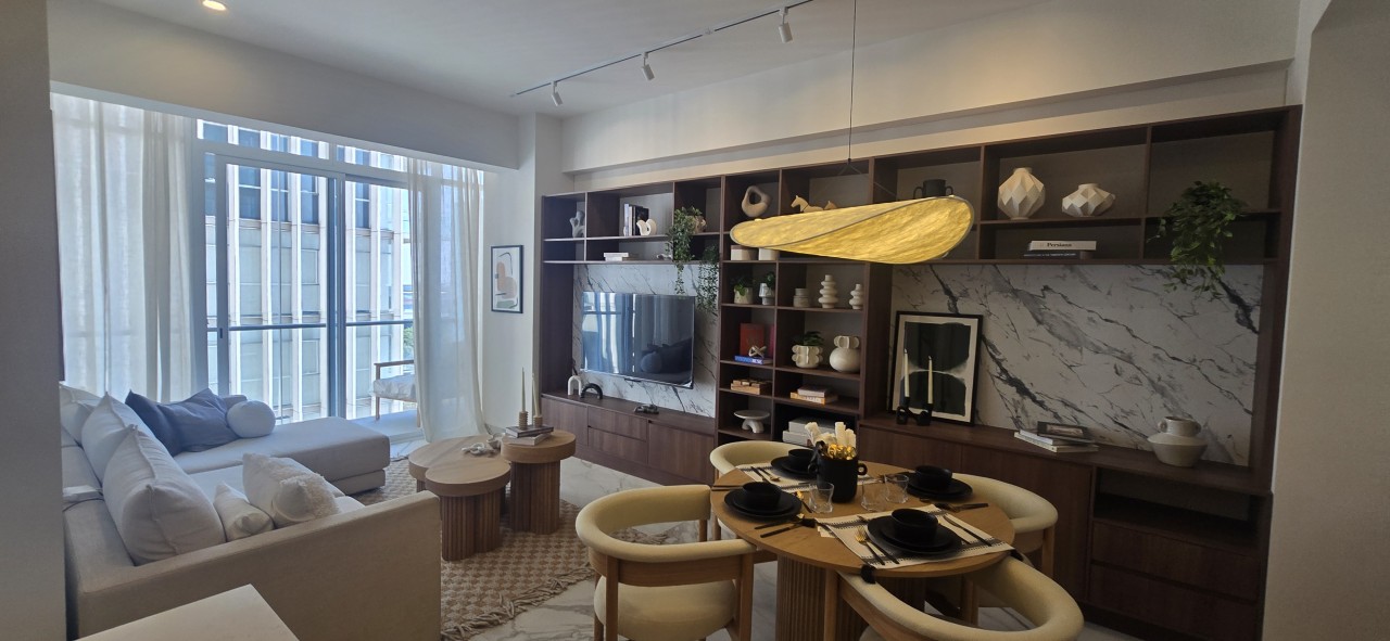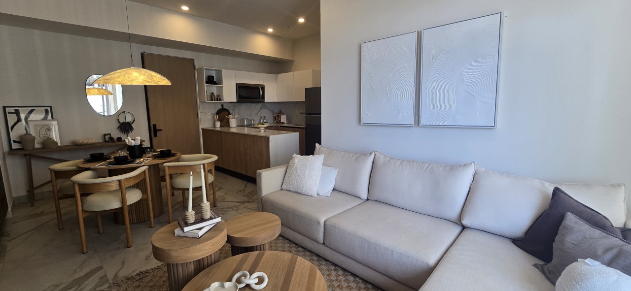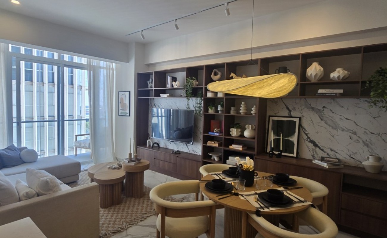 Un espacio contemporáneo, lleno de luz natural, con una impresionante terraza que recorre todo el largo del departamento y regala vistas panorámicas desde cualquier ángulo.