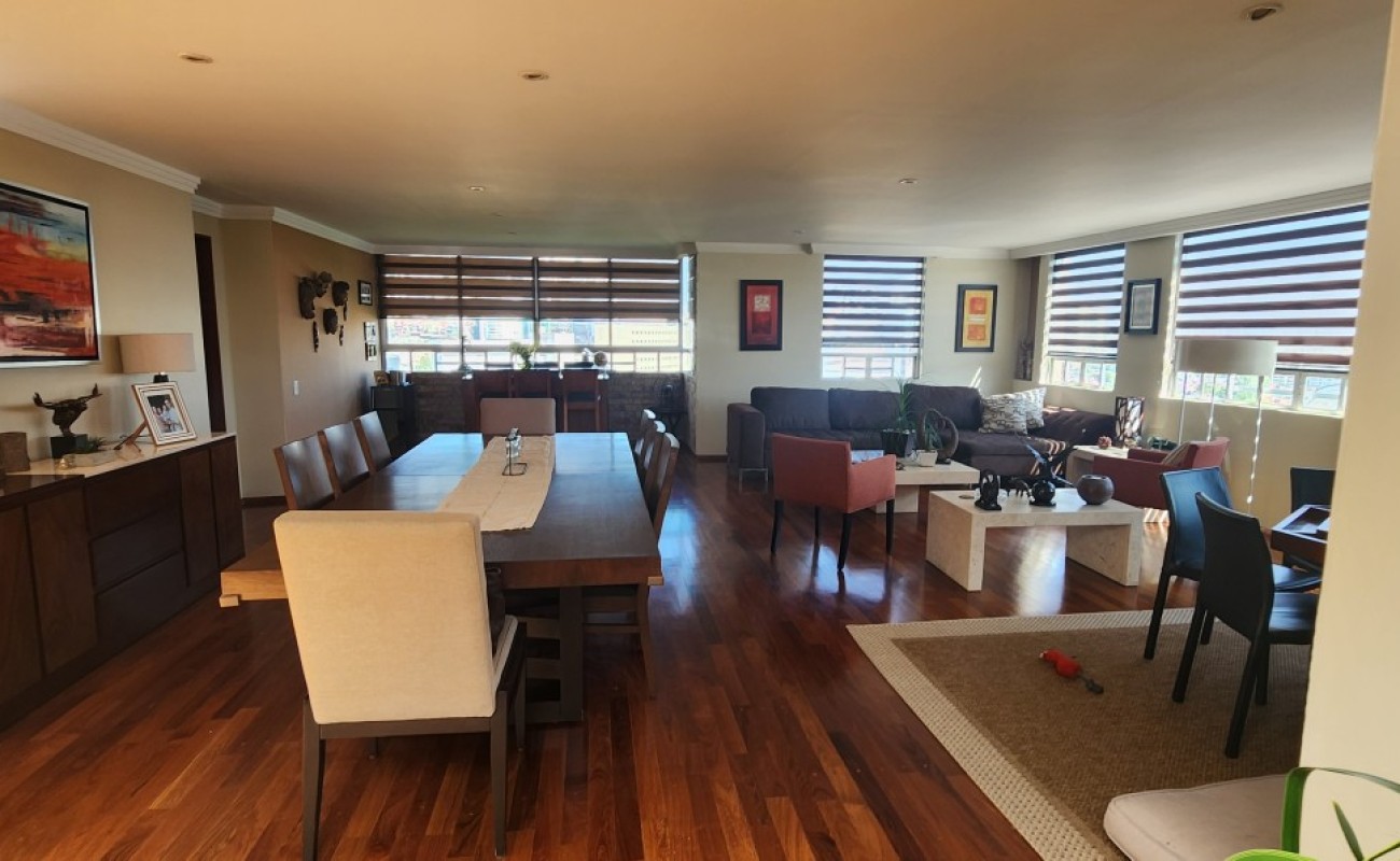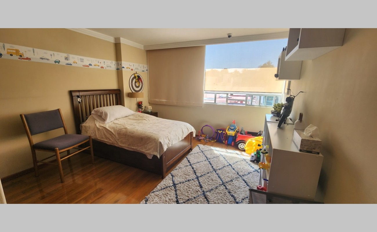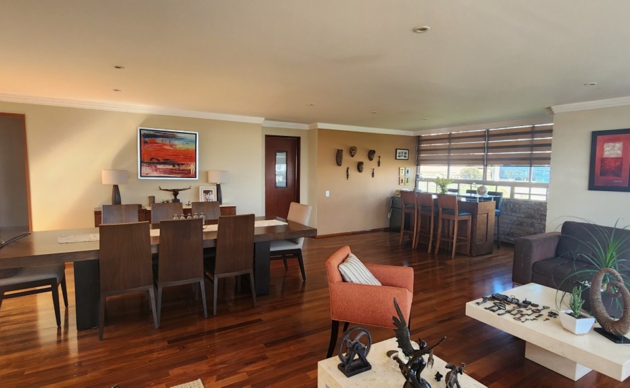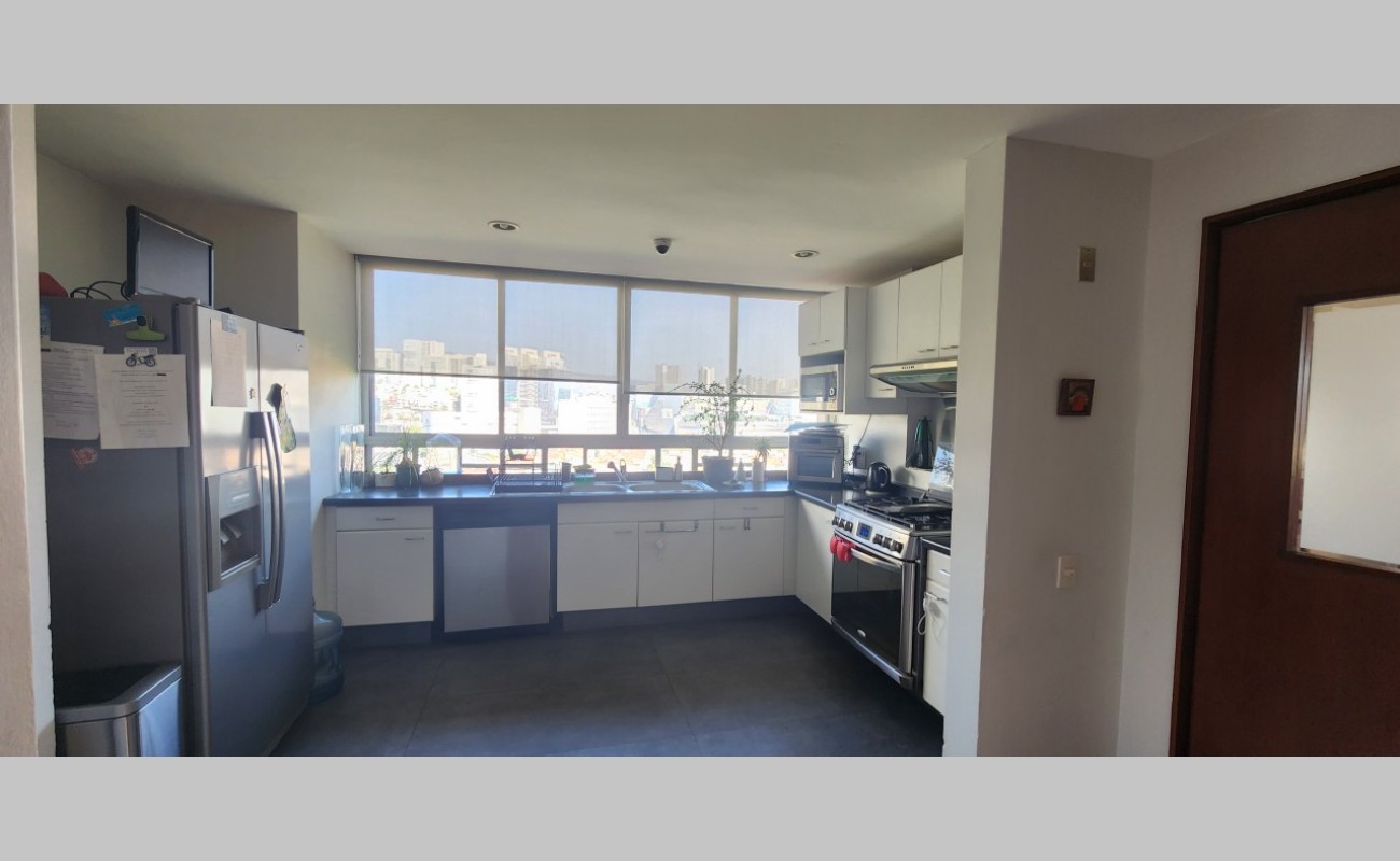Fabuloso Pent House, en edificio de solo 7 pisos y un departamento por piso, calle cerrada con doble vigilancia 24/7, muy iluminado, extrema tranquilidad en la calle, pisos de madera duela Tzalam, en toda el área social, laminado en las recámaras, loseta en cocina y baños, consta de: vestíbulo, amplia estancia comedor, cocina integral cerrada, con desayunador, cuarto de lavado, cuarto de servicio con baño,sala de tv, 3 recámaras, principal con vestidor y baño, 2da recámara con vestidor y baño completo, 3era recámara comparte baño con las visitas, pequeña bodega, 3 lugares de estacionamiento cubiertos. El edificio cuenta con vigilancia, lobby, salón de eventos, jardín, baños, estacionamiento de visitas.